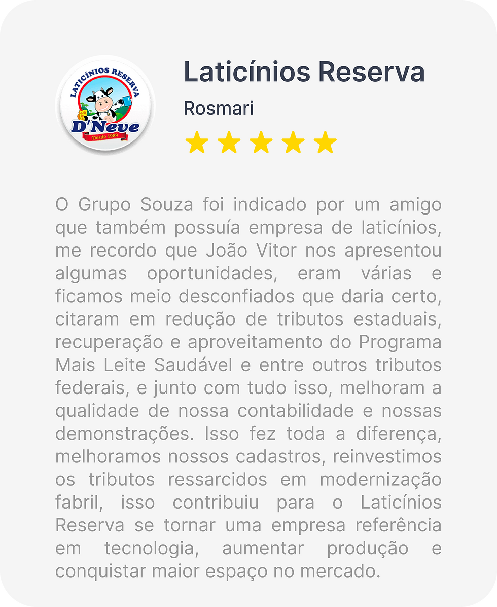 No Grupo Souza, compreendemos os desafios únicos que as empresas de laticínios enfrentam no cenário tributário. Com mais de 60 laticínios em nossa carteira, nossa equipe de especialistas em tributação possui um conhecimento profundo das nuances do setor. Veja como podemos beneficiar sua empresa